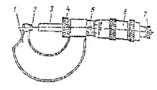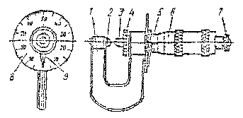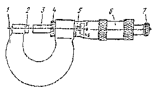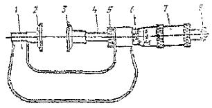 - гайка; 3 - стебель; 4 - стопор; 5 - микрометрический винт; 6 - барабан; 7 -