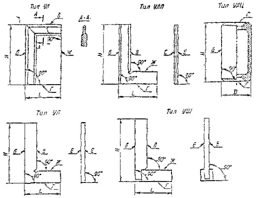 Угольники типа УЛЦ имеют следующие размеры, мм: Н 160 250