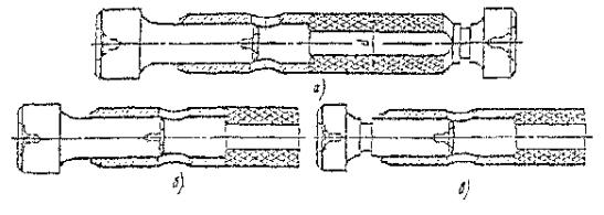 50-100 мм. Пробки с насадками двусторонние (рис. Н.16,а), проходные (рис. Н.16,б) и непроходные (рис. Н.16,в) изготовляют для контроля отверстий диаметром