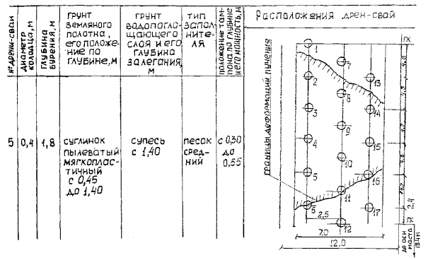 схемы, на которой указывают номера дрен-свай, их местоположение с привязкой по