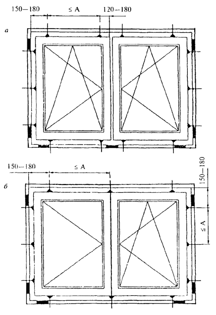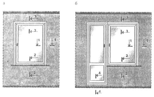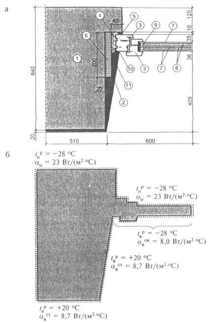 температурного режима узлов примыканий оконных блоков к наружным стенам: а - оконного блока; б