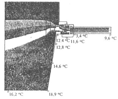 распределения температур (изотерм) по сечению рассчитываемой области и значений