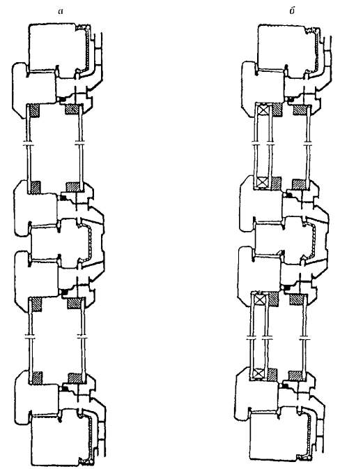спаренной конструкции рекомендуется уплотнять по контуру, при этом в нижней и верхней части следует предусматривать