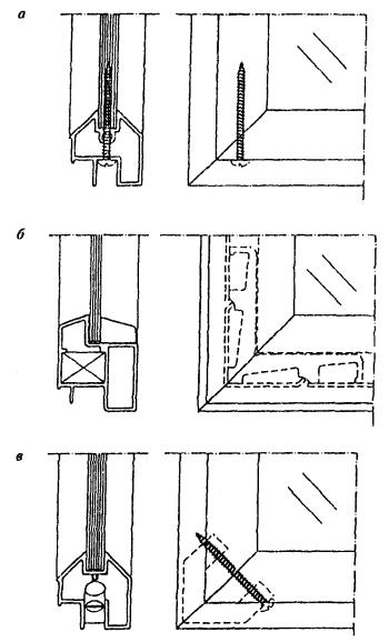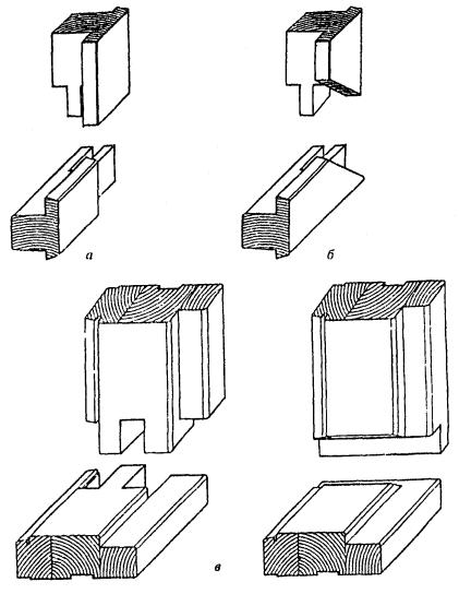 створки; в - конструкция шипового углового соединения коробки Рисунок А.4 - Примеры конструкций угловых