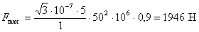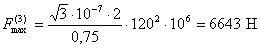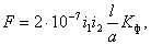 где 2×10-7 - постоянный параметр, Н/А2; а - расстояние между осями проводников, м; i1, i2 -