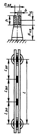 головки изолятора до центра тяжести шины hц = 80 мм, высоту арматуры