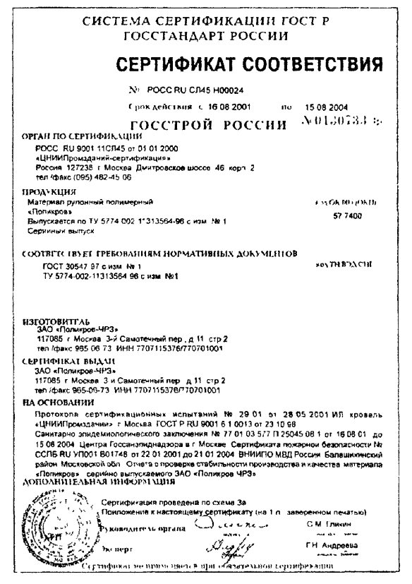 дерматологические защитные. Классификация. Общие технологические требования. ТУ 5774-002-11313564-96. Материал рулонный полимерный «Поликров». ТУ 5775-003-11313564-96. Мастика полимерная кровельная «Поликров-М». ТУ 5775-004-11313564-96. Праймер (резино-битумная мастика) «Полибит». ТУ