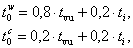 Здесь ti - расчетная температура воздуха или жидкости внутри сооружения в