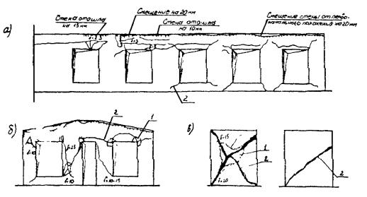 с шириной раскрытия более 2 мм. Отрыв торцевых и поперечных стен от