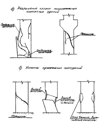 выпучивание арматуры железобетонных колонн, скалывание колонн в средней части