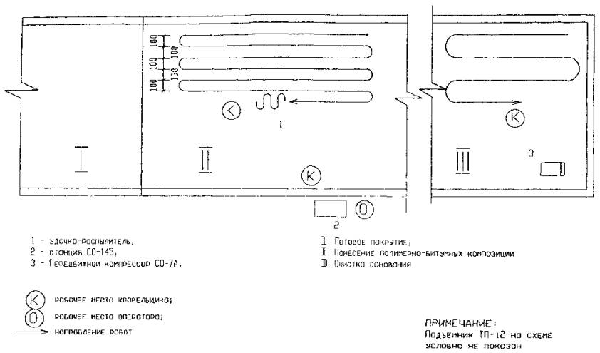 производстве работ по устройству кровель с применением битумно-полимерных