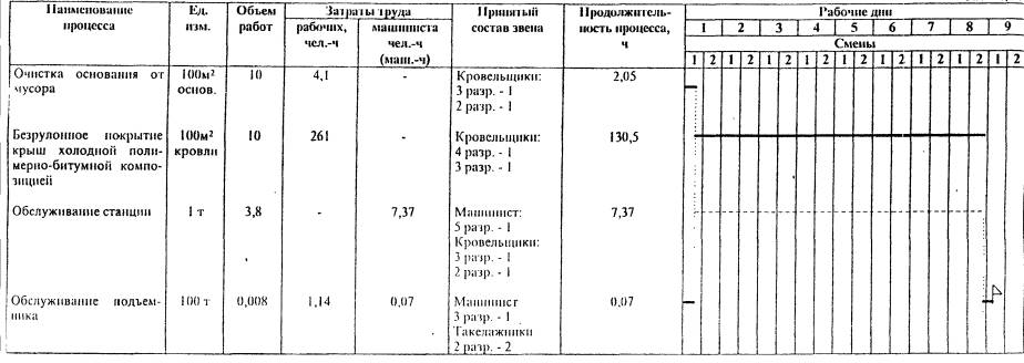 производства работ на устройство 1000 м2 кровли Таблица 6