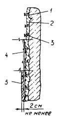затирки; 3 - набрызгбетон; 4 - арматурная сетка; 5 - односторонняя опалубка Рис. 2. Ремонт