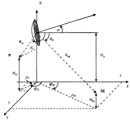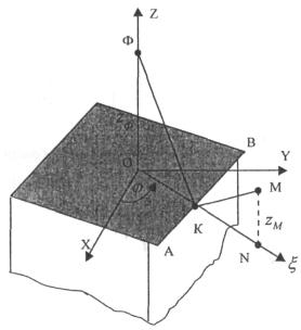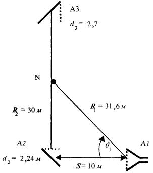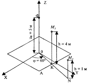 высотой 30 м. Координаты углов крыши A(5, 10, 30), В(-5, 10, 30). Координаты фазового центра Ф(0, 0, 5). Постановка задачи проиллюстрирована на рис. П7.2. Остальные