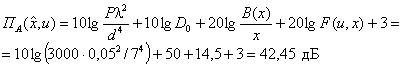 этажей - 16, питание этажей - синфазное, рабочая частота f = 2400 МГц, излучаемая мощность Р =