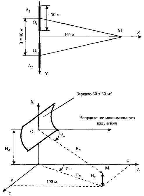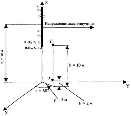 = 6,78 м, у = 11,73 м, z = 1 м. Антенна расположена на крыше высотного здания