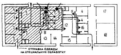 персонала и на складе загрязненной одежды следует предусматривать поливочные
