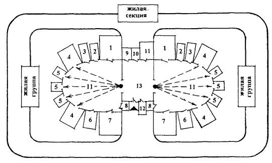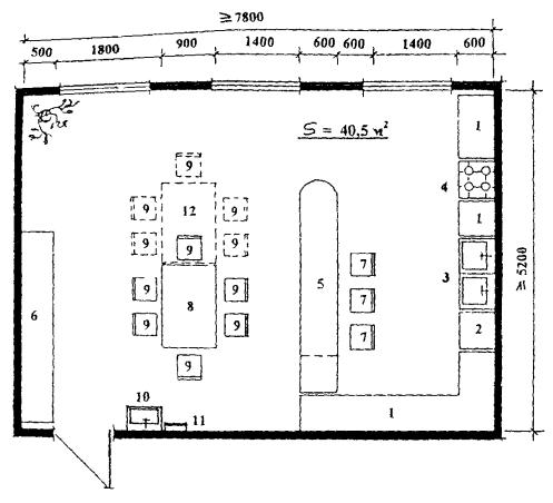 Комбинированная стенка 7. Табурет 8. Обеденный стол 9. Стул 10. Умывальник 11. Вешалка для полотенца 12. Стол резервный Рис. П.6.
