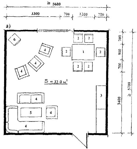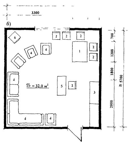 Планировка и примеры расстановки оборудования комнаты тихого отдыха: а) для тихого
