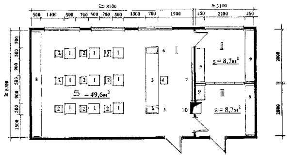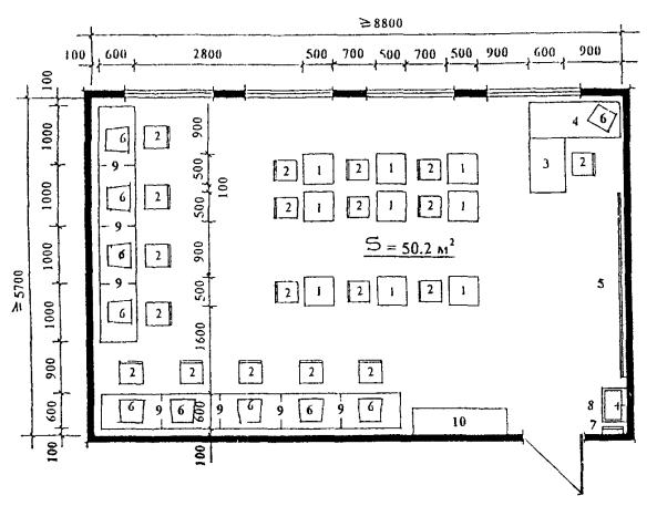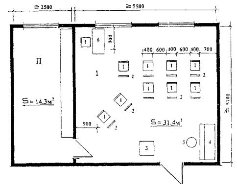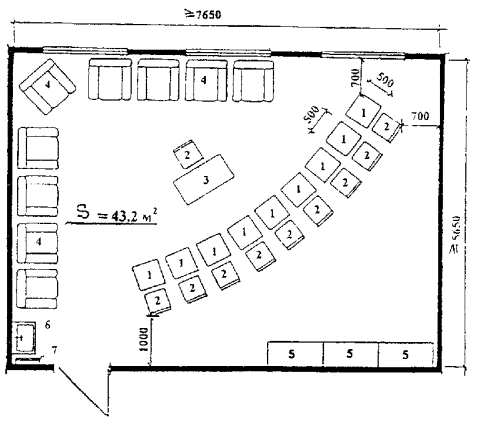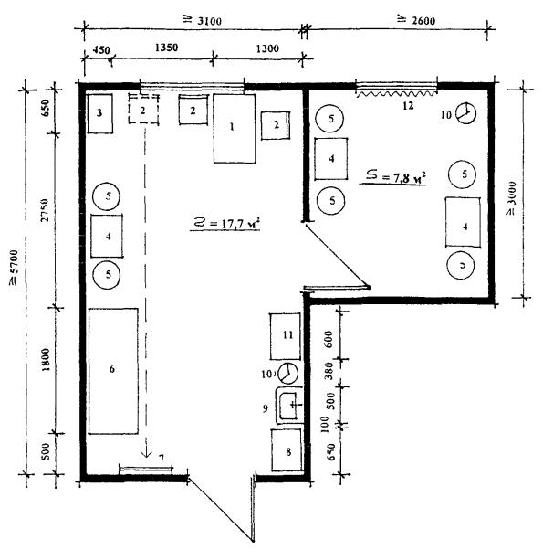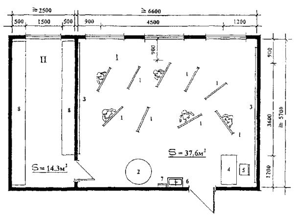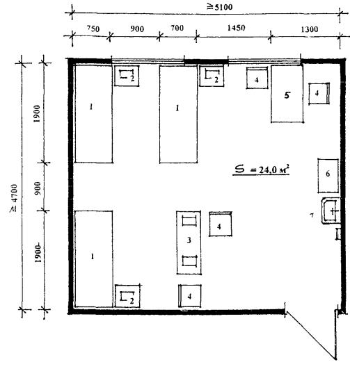 преподавателя 6. Умывальник 7. Вешалка для