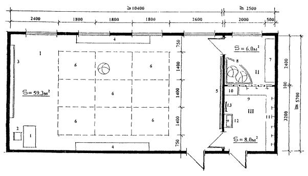 складирования мячей III. РАЗДЕВАЛКА 9. Скамья для