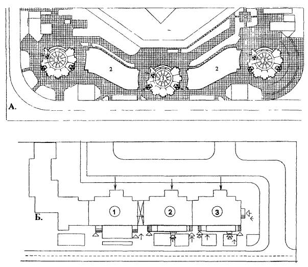 участке с торговыми и другими общественными зданиями, и объединенные общей
