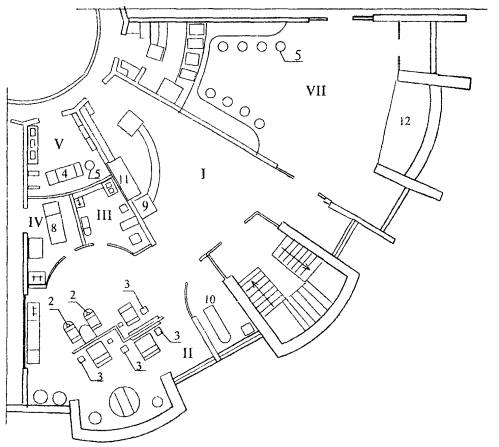 аппарат, 10 - прилавок ювелира, 11 - прилавок часовщика.