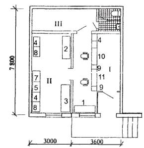 тележка - стол, 10 - стерилизатор, 11 - ванна паровая, 12 - лампа