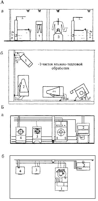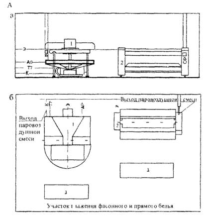 ОБОРУДОВАНИЯ В АТЕЛЬЕ ПО ПОШИВУ ВЕРХНЕГО И ЛЕГКОГО ПЛАТЬЯ А - Основной вариант Б - Вариант решения производственной группы с