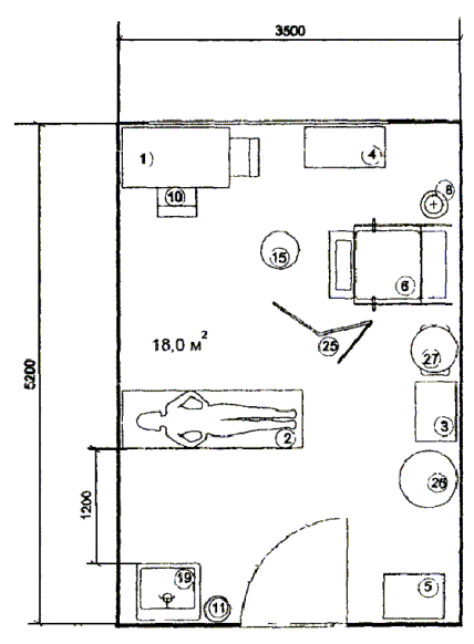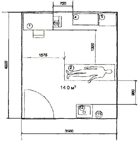 бокс инфекционных больниц для взрослых. Площадь - 17,9 м2