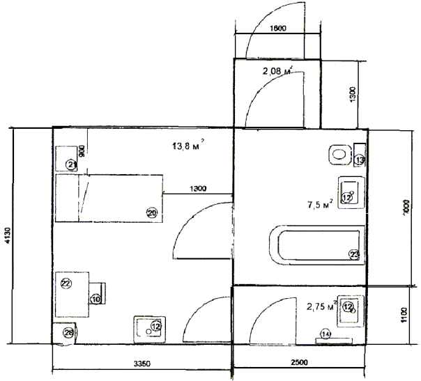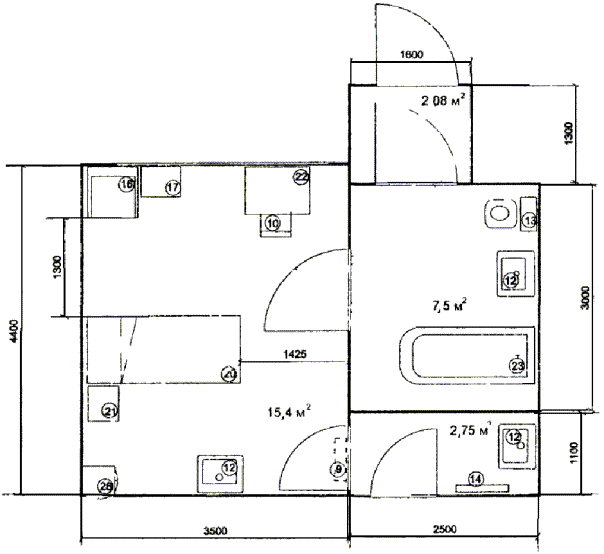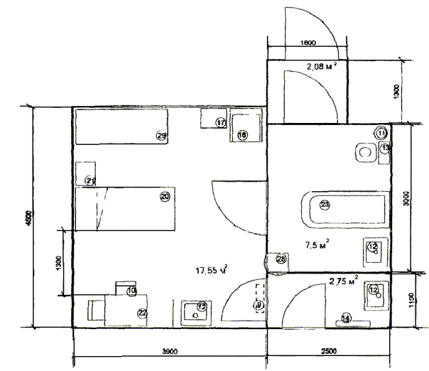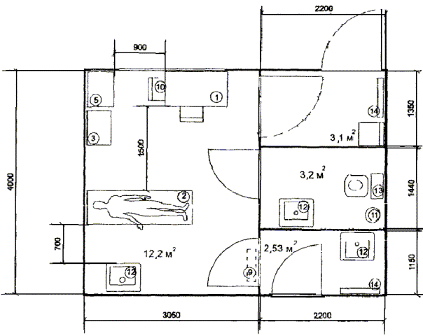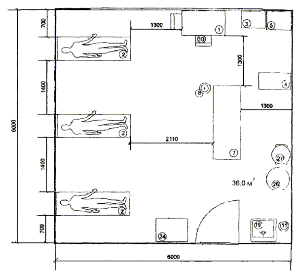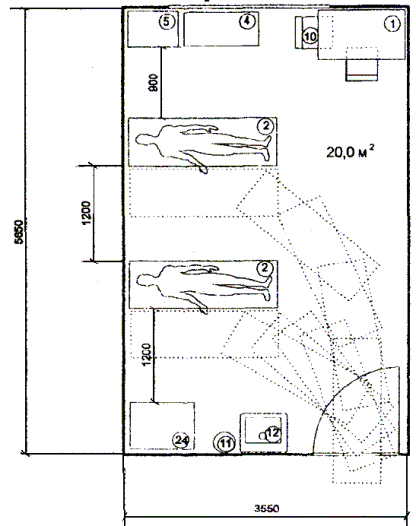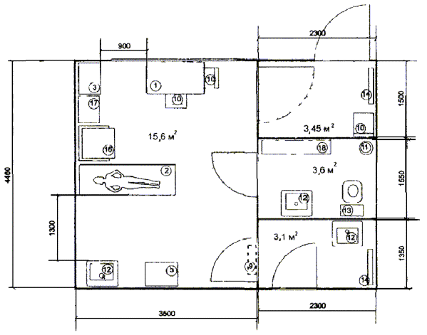 Изоляционно-диагностический бокс инфекционных больниц для взрослых. Площадь - 24,05 м2