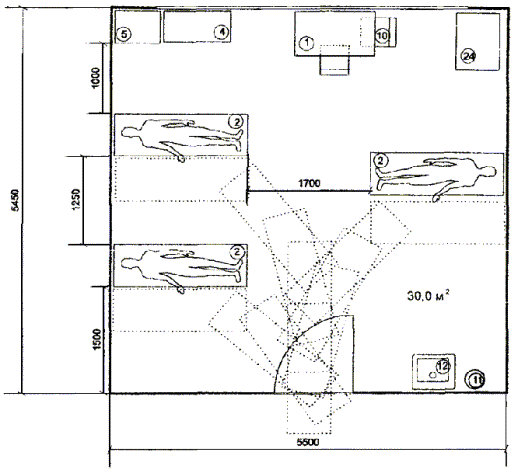 гинекологическим креслом и помещение санитарной обработки. Пути движения