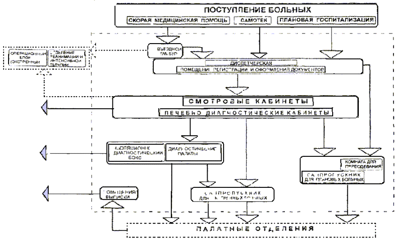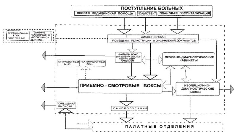 взаимосвязи основных помещений приемных отделений неинфекционных больниц для