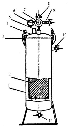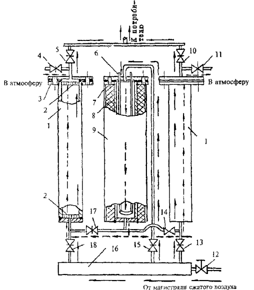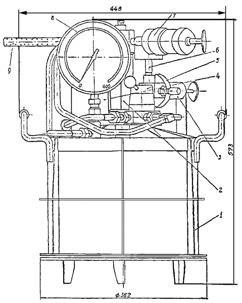 воздуха прекращают в момент достижения давления по манометру 4 тарировочного