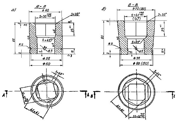 гайкой (в скобках размеры при использовании
