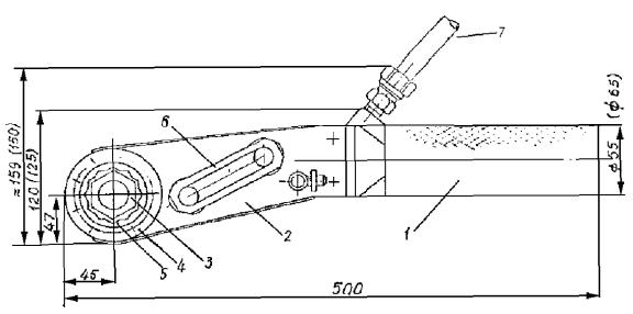 сменную ось 2 заменяют шестигранной 7; устанавливают на