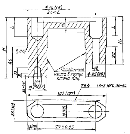 т.е. расстояние до центра тяжести ключа; L - длина рукоятки ключа до точки подвески груза; Мкр - расчетный