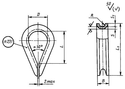 введения 1995-01-01 Настоящий стандарт распространяется на кованые и штампованные коуши для крепления концов стальных канатов подъемно-транспортных устройств климатических исполнений У, ТУ, ХЛ, ТВ и ТС категорий размещения 1, 2, 3 по ГОСТ 15150. Стандарт не распространяется на коуши, применяемые на атомных электростанциях, в авиастроении, судостроении, морском и речном такелаже, а также при подъеме судов. Требования настоящего стандарта являются обязательными. 1 Основные параметры и размеры1.1. Основные параметры и размеры коушей должны соответствовать указанным на рисунке и в таблице. Коды ОКП коушей приведены в приложении 1. Размеры коушей по стандарту ИСО 2262 приведены в приложении 2.