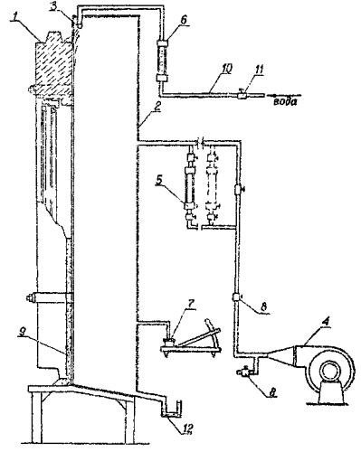 воздуха; 6 - ротаметр для измерения расхода воды; 7 - микроманометр; 8 - кран