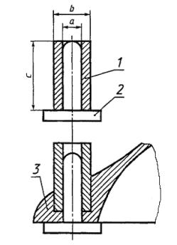 - вилка; 3 - основание Рисунок 3 - Калибр для проверки крепежных отверстий фланцевых патронов (см. 12.11) Рисунки предназначены только