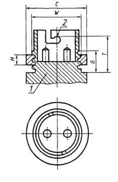 Рисунок 6 - Испытательный цоколь B22d (см. 18.3) 1 - изоляционный материал; 2