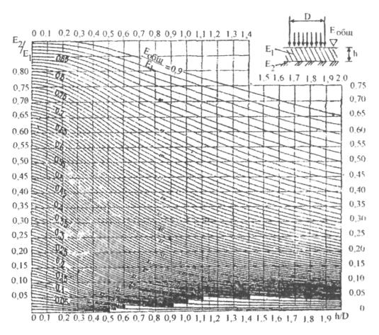 определения толщины слоя усиления (Е2 =