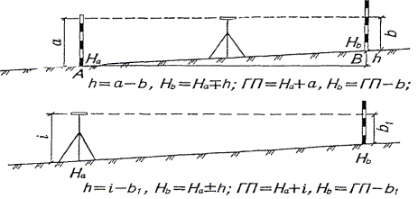 отсчеты по рейке на высоте прибора по нижней и верхней нитям сетки.