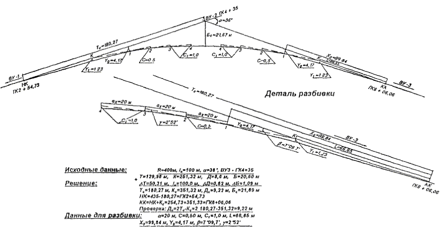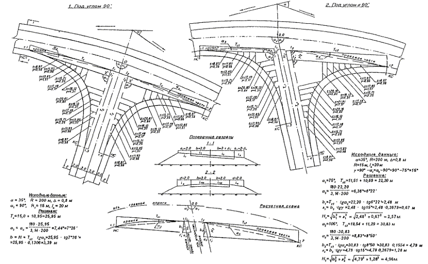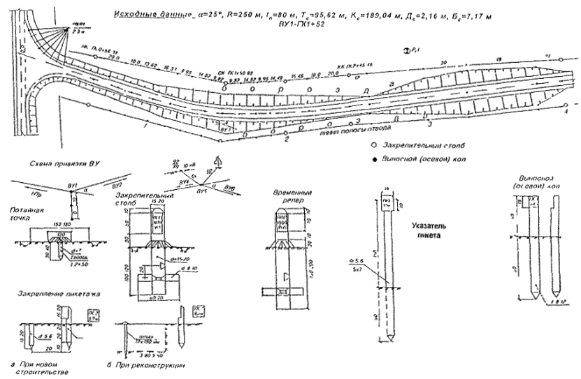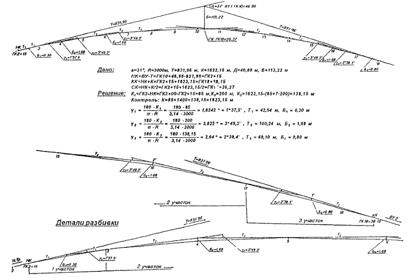 2. Разбивка кривых на углах поворота, пересечениях, примыканиях и