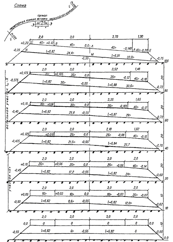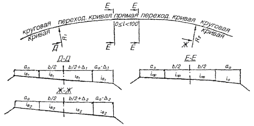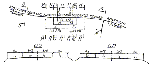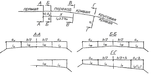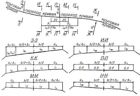 Переход от поперечного про филя с уклоном виража iв1 к поперечному профилю с