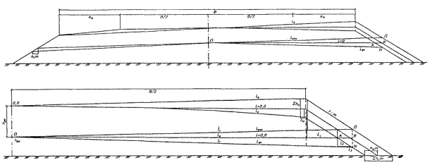 земляного полотна от оси дороги до бровок, определенная по формулам: Ii = Iо(1 + im + i2m2); Iо = B / 2 + (hдо - hо) · m при условии hдо ≠ hiзп