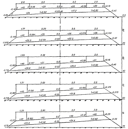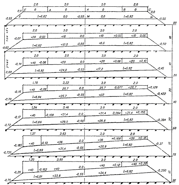 координаты для детальной разбивки горизонтальных кривых от тангенса. 84