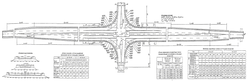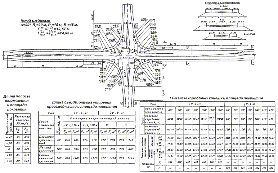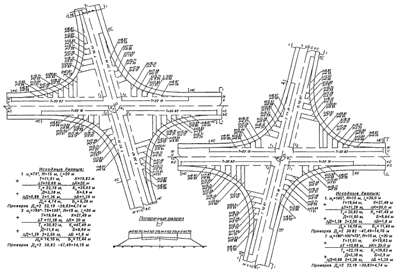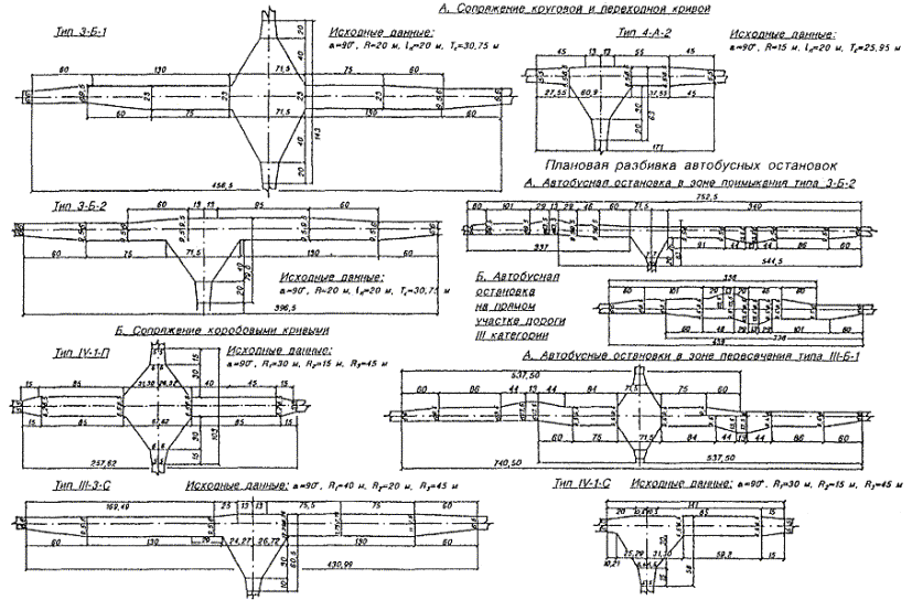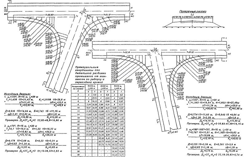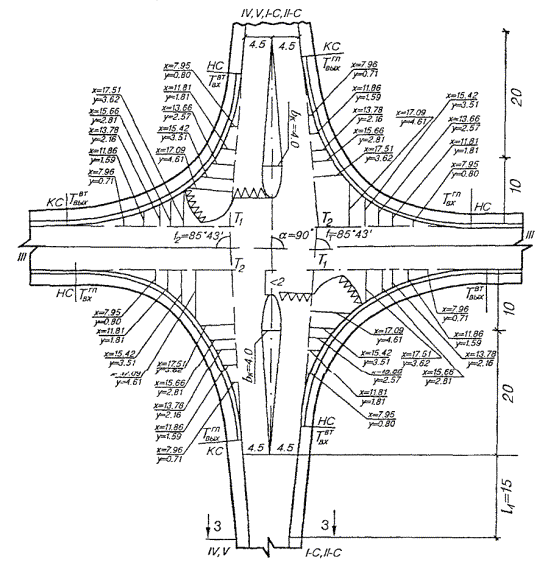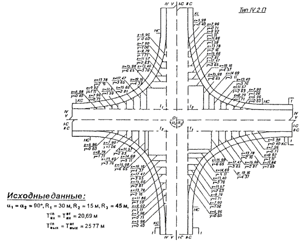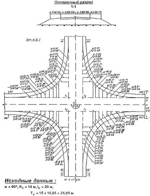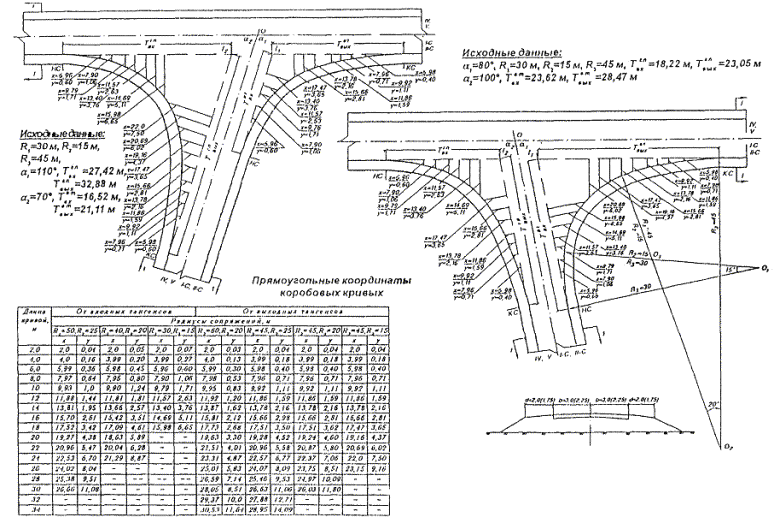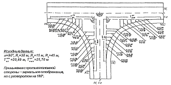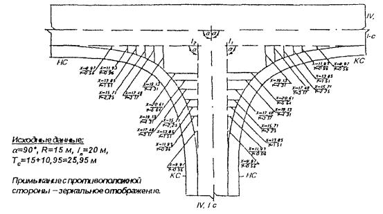 координаты для детальной разбивки пересечений и примыканий коробовыми кривыми. 90