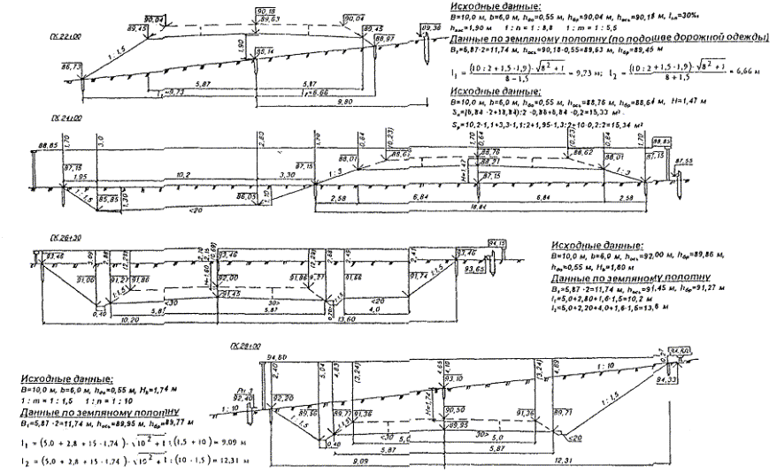 взаимосвязанные превышения бровок земляного полотна с бровками обочин и
