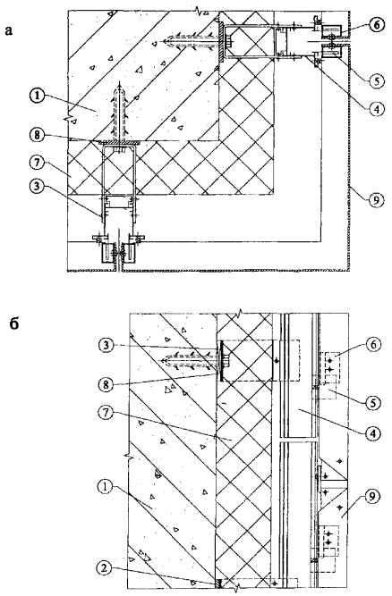 ведут снизу вверх. Крепление облицовочных материалов к вертикальным профилям изложено в п. 3.3.3. Одновременно производится